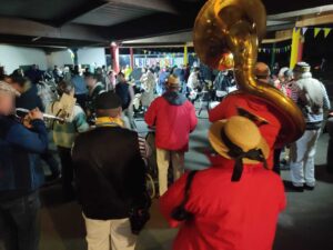 🎶La fanfare🎶 était présente et en tête de cortège la géante du quartier : Claire du Flocon !!
